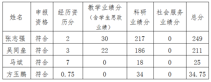 KY开元集官网2024年职称申报人员为:张志强(申报教授)、吴同垒(申报教授)、马斌(评助理研究员(社科类))、方玉鹏(转评讲师)。经KY开元集官网基层学科推荐评议组审核张志强、吴同垒、马斌、方玉鹏四位同志符合职称评定文件要求,同意推荐。按照职称工作相关文件,对申报人材料进行认定和量化。现予以公示: