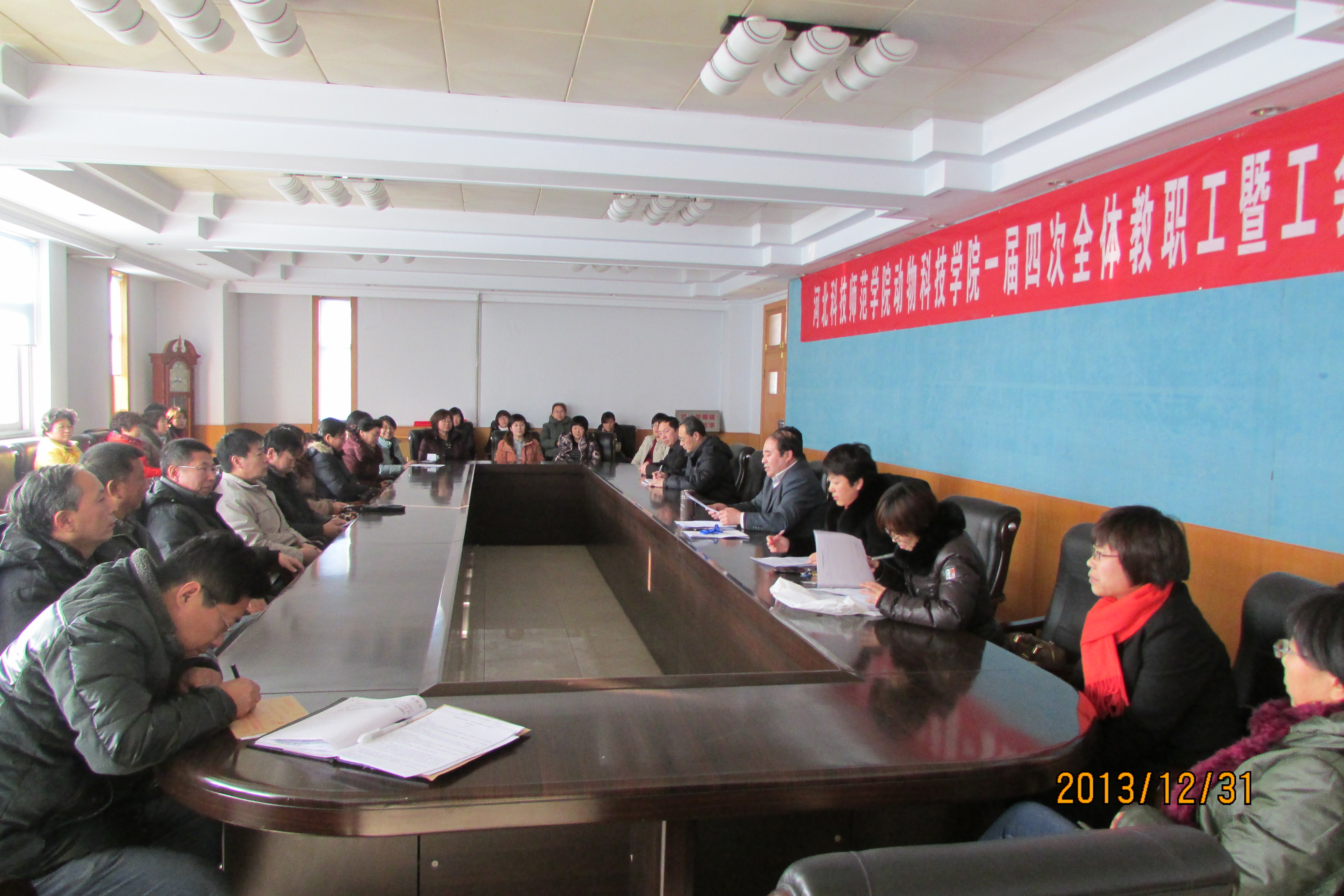 2013年12月31日下午,KY开元集官网在主楼三楼会议室举行KY开元集团官网入口第一届第四次全体教职工暨工会会员大会,参加本次大会的有党委常委、党委办公室、校长办公室主任李佩国,KY开元集团官网入口领导班子成员和全体教师。
