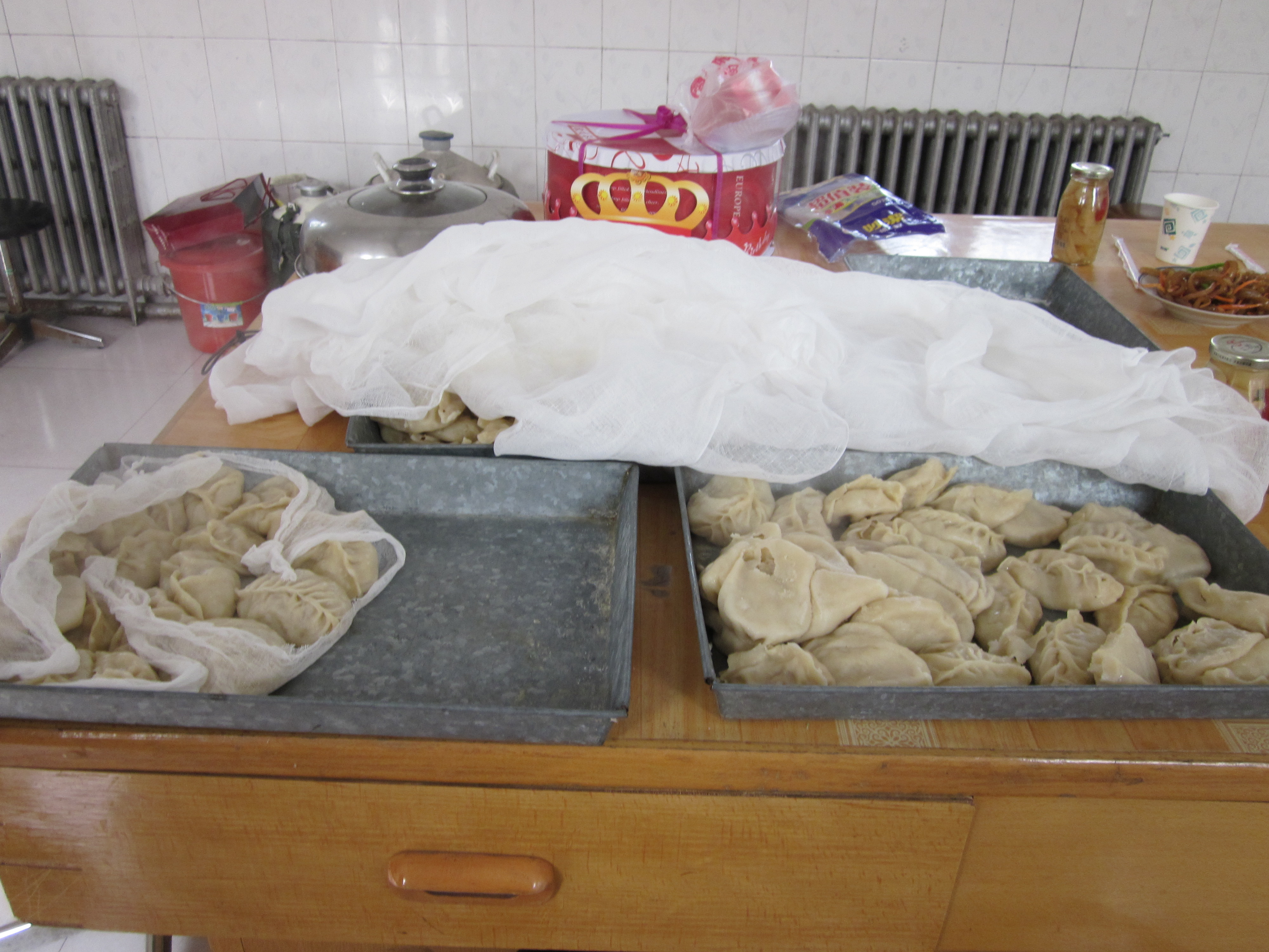 包好的一盘盘饺子