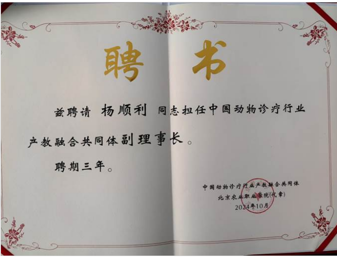 2024年10月24日至25日,于北京农业职业学院召开“中国动物诊疗行业产教融合共同体(下称共同体)”成立会议。