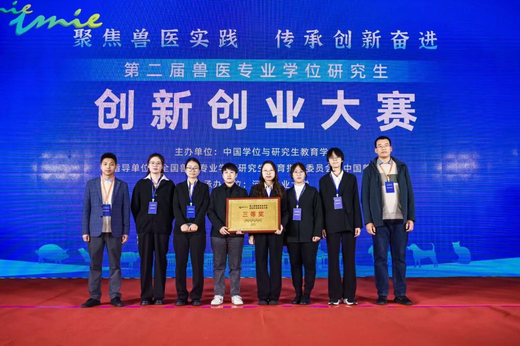 2024年11月4日至6日,第二届兽医专业学位研究生创新创业大赛在郑州举行。KY开元集官网兽医专业硕士研究生刘金金、郭紫薇、王晶毅、孙莹、赵秋旖、宋乘琦等6名同学组建的“控‘蓝’有道”团队,以“猪繁殖与呼吸综合征(PRRS)RNA疫苗研发”为题参加创新组比赛,并荣获大赛团体三等奖。方玉鹏博士和刘永波博士担任大赛的指导老师。