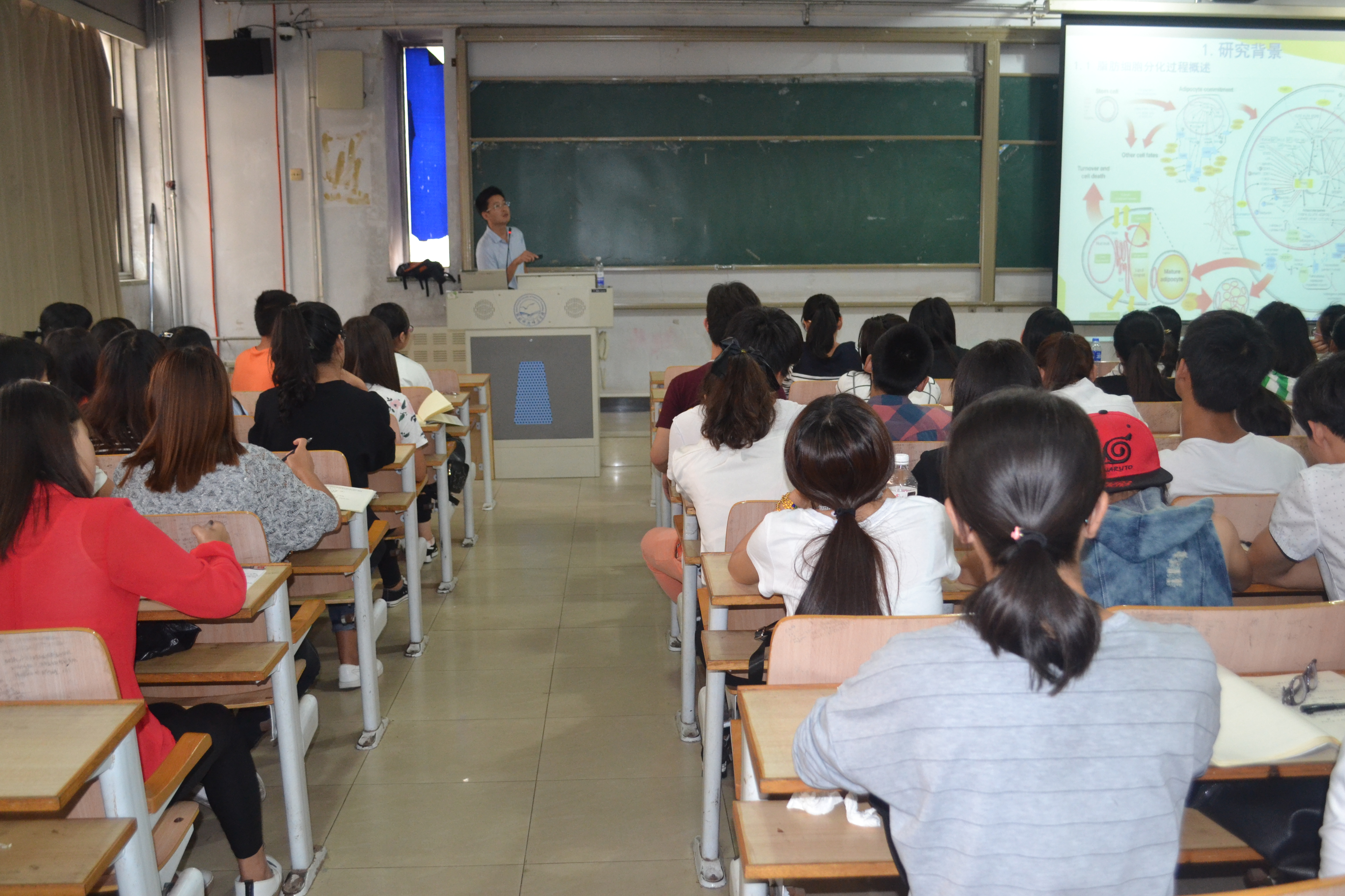 第二场讲座是彭永东讲师带来的《miR—215调控脂肪细胞的分化》,讲座由浅入深,深入浅出,层层递进。将在场同学带入了微观世界,使同学们更加对脂肪细胞的分化有了深入的了解,彭老师首先讲解了脂肪细胞分化过程的概述,还有RNA的常见分类和其他种类以及与特异mRNA结合,降解靶mRNA或抑制基因的表达技术路线,随后讲到miRRNA调控脂肪细胞分化作用和miR—215对脂肪细胞的作用研究,以及miR—215靶基因的鉴定和预测,最后又深刻讲解了miR—215调控脂肪细胞分化的机制。